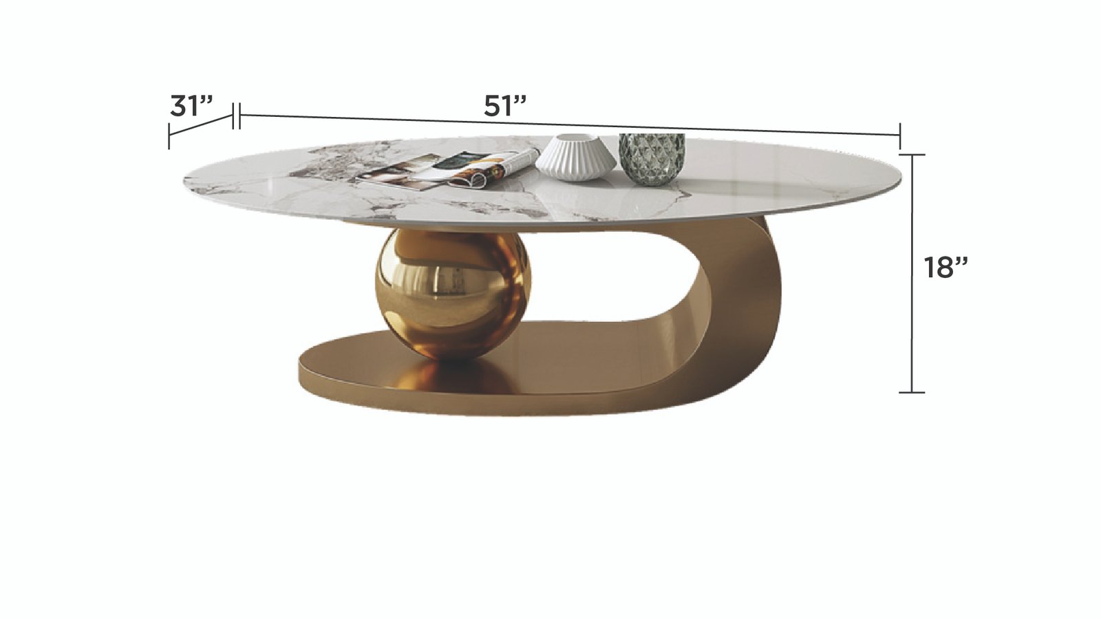 Introducing our luxurious coffee table, a stunning blend of modern design and timeless elegance that will transform any living space. With a durable golden stainless steel frame and radiant finish, this table exudes sophistication and glamour. The premium ceramic tabletop provides both style and practicality, perfect for displaying decor or enjoying refreshments. Ideal for both contemporary and classic interiors, this coffee table is the perfect statement piece to elevate your home.