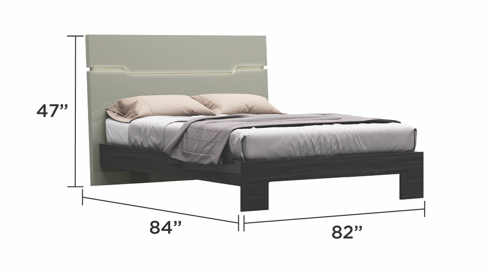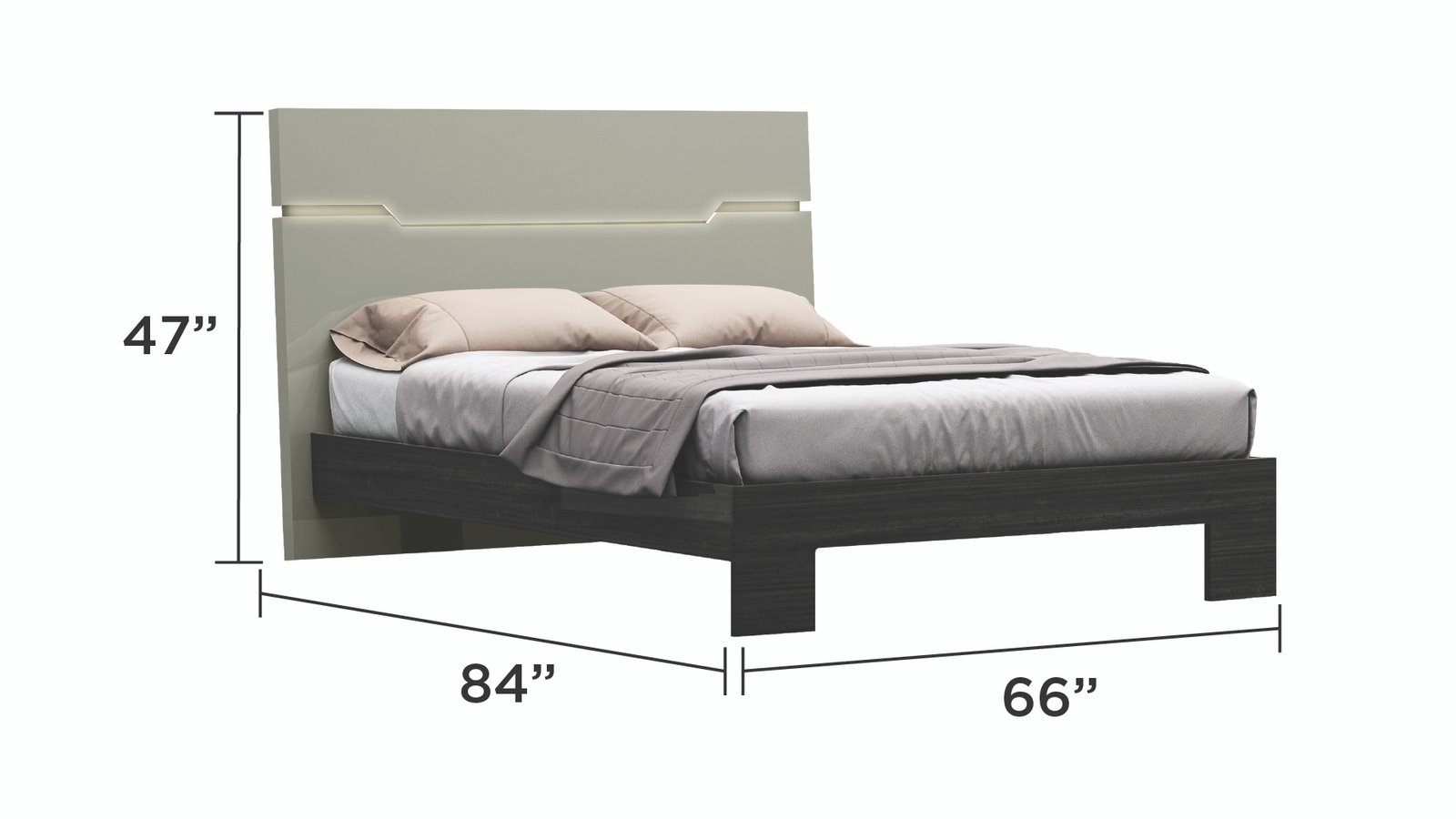 1.LED Headboard: To complete our futuristic design, this headboard includes an LED light that luminates your bedroom right before bed. 2.Lacquer Finish: Wood finishing is old news, glossy smooth finishing to a bedroom set never looked better, instantly providing an everlasting pop. 3.Crafted in a toned grey hue, our Bedroom Set exudes a sense of tranquillity and modernity, making it the perfect addition to any contemporary living space.