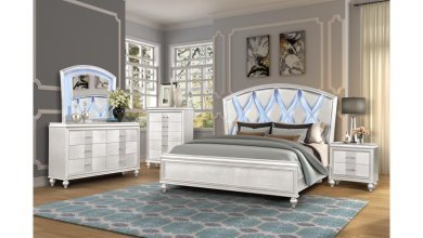 Elevate your bedroom with this modern 5-piece bedroom set, featuring a sleek white finish and a luxurious upholstered LED headboard. Designed for both style and functionality, this set includes a bed, dresser, mirror, nightstand, and chest, offering a complete bedroom solution. The tufted PU leather headboard with built-in LED lighting adds a soft ambiance, while spacious storage drawers ensure easy organization. With its clean lines, silver-tone hardware, and sturdy construction, this collection blends contemporary elegance with everyday convenience, making it the perfect choice for a modern and sophisticated retreat.