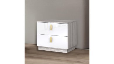 Upgrade your bedroom with this contemporary bedroom set, designed for modern elegance and functionality. The upholstered headboard features integrated LED lighting and unique accent details, creating a sophisticated ambiance. The sleek two-tone finish is complemented by gold accents, adding a touch of luxury. The case goods, including a dresser, mirror, nightstand, and chest, offer ample storage and are crafted with high-quality materials to ensure durability. This set perfectly balances style and practicality, making it a standout addition to any bedroom.