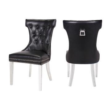 The chair is beautifully structured with smooth velvet fabric, available in Black, Dark Grey, Navy Blue and Green, adding a rich, elegant, and sophisticated touch to your living and dining spaces. Crafted to perfection, its chrome legs and chrome handle bring instant sparkle, while the unique bedazzled buttons along the perimeter enhance its luxurious appeal. Designed for both style and comfort, the cushioned seat provides exceptional relaxation, whether dining or unwinding in your living room. As a trusted source for unique furniture, including bedrooms, living rooms, dining rooms, and accent pieces, this chair is a perfect blend of elegance, durability, and comfort.