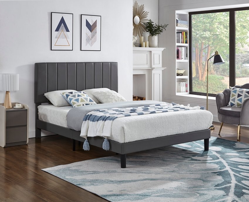 Grey PU Bed with Vertical Tufting