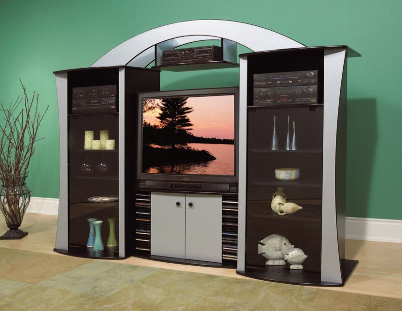 This entertainment center combines high-end style with practical design for the modern home.